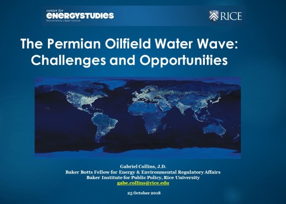 Presented at the Shale Water Expo 2019, 22 October 2019, Houston, TX Full presentation available here: Gabriel Collins, “Collins_How Produced
